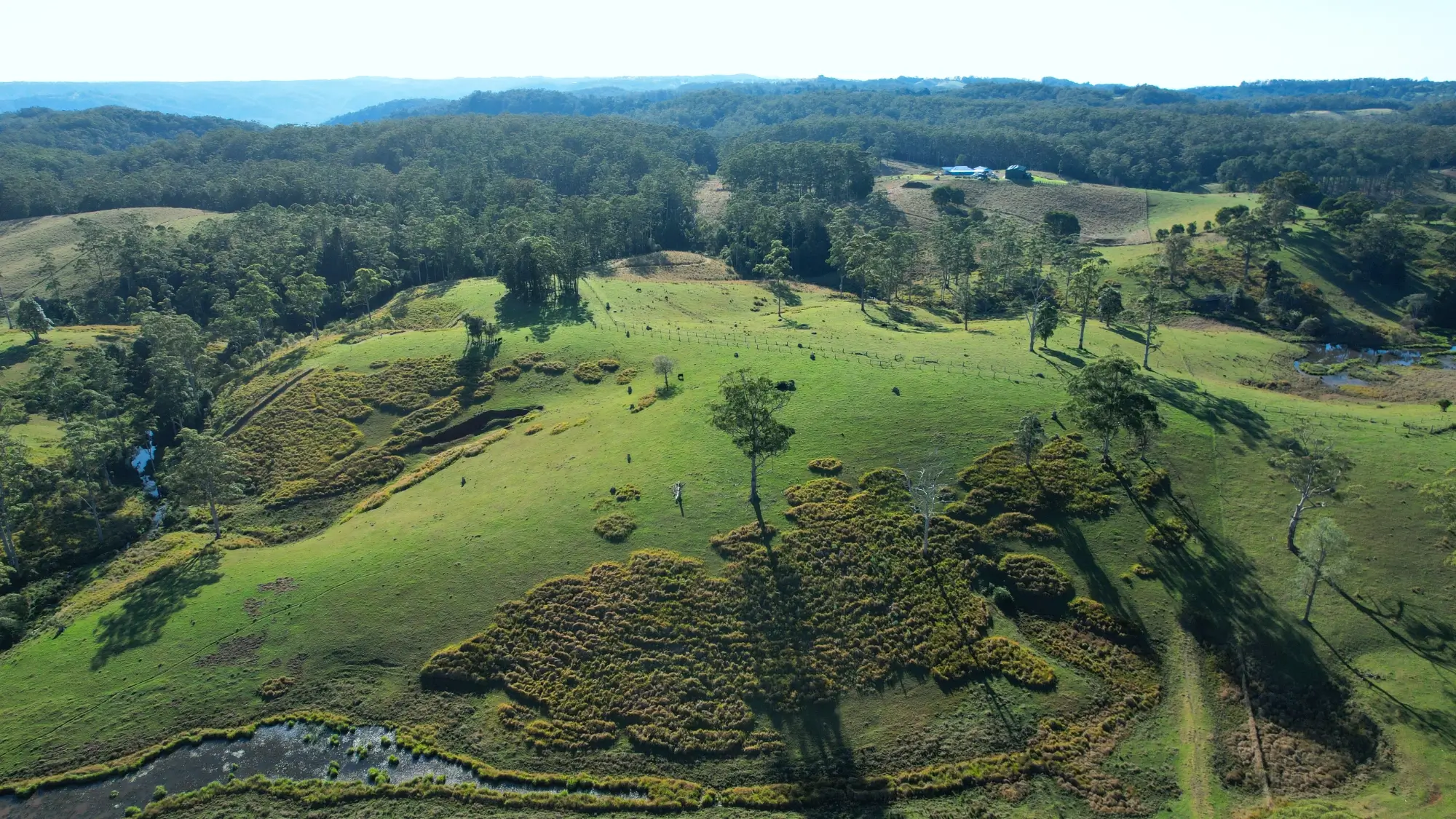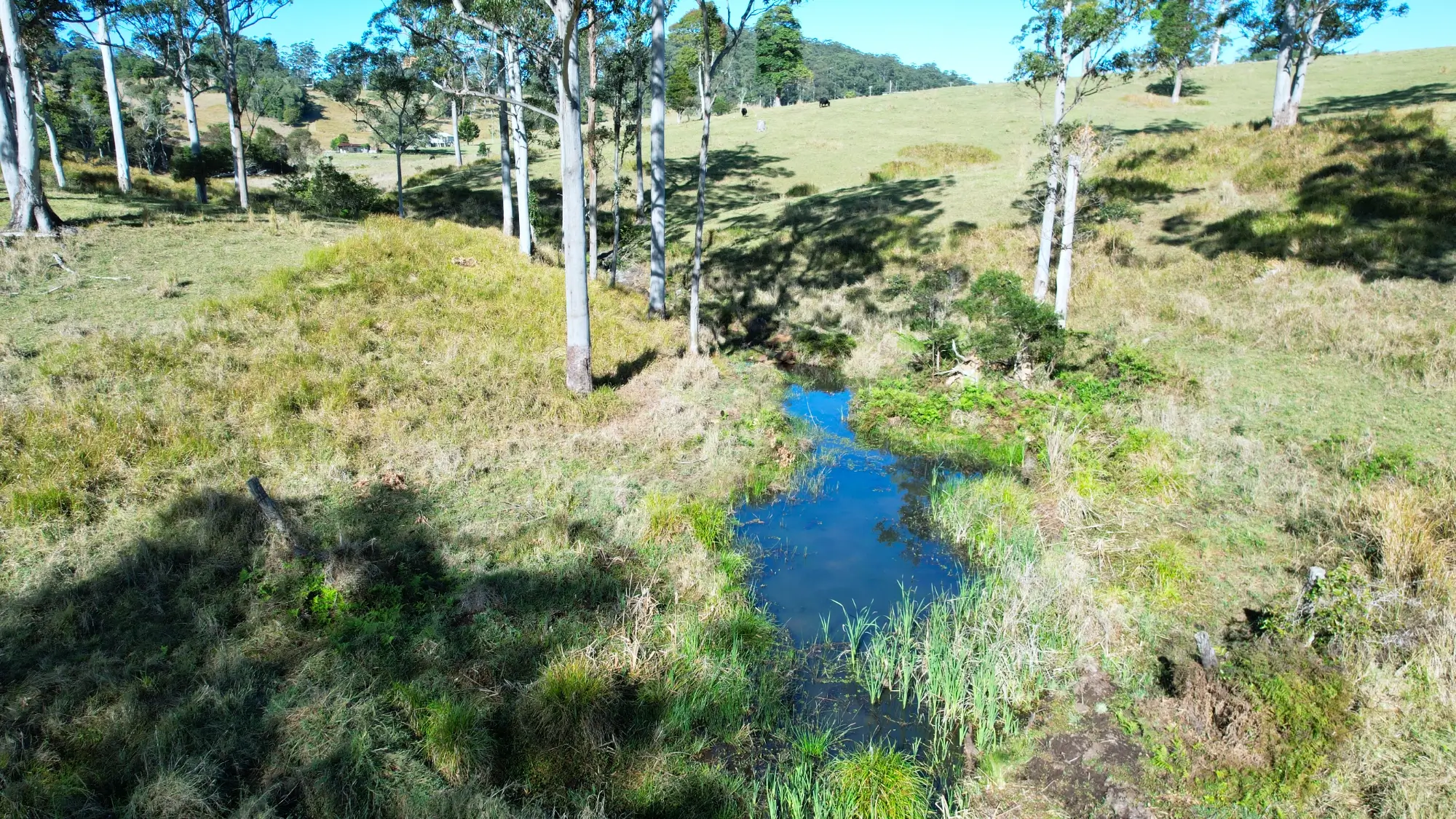 Water is in an abundance supply from the two spring fed dams, natural spring waterways and clear flowing creek, and an annual rainfall of over 1,000mm.